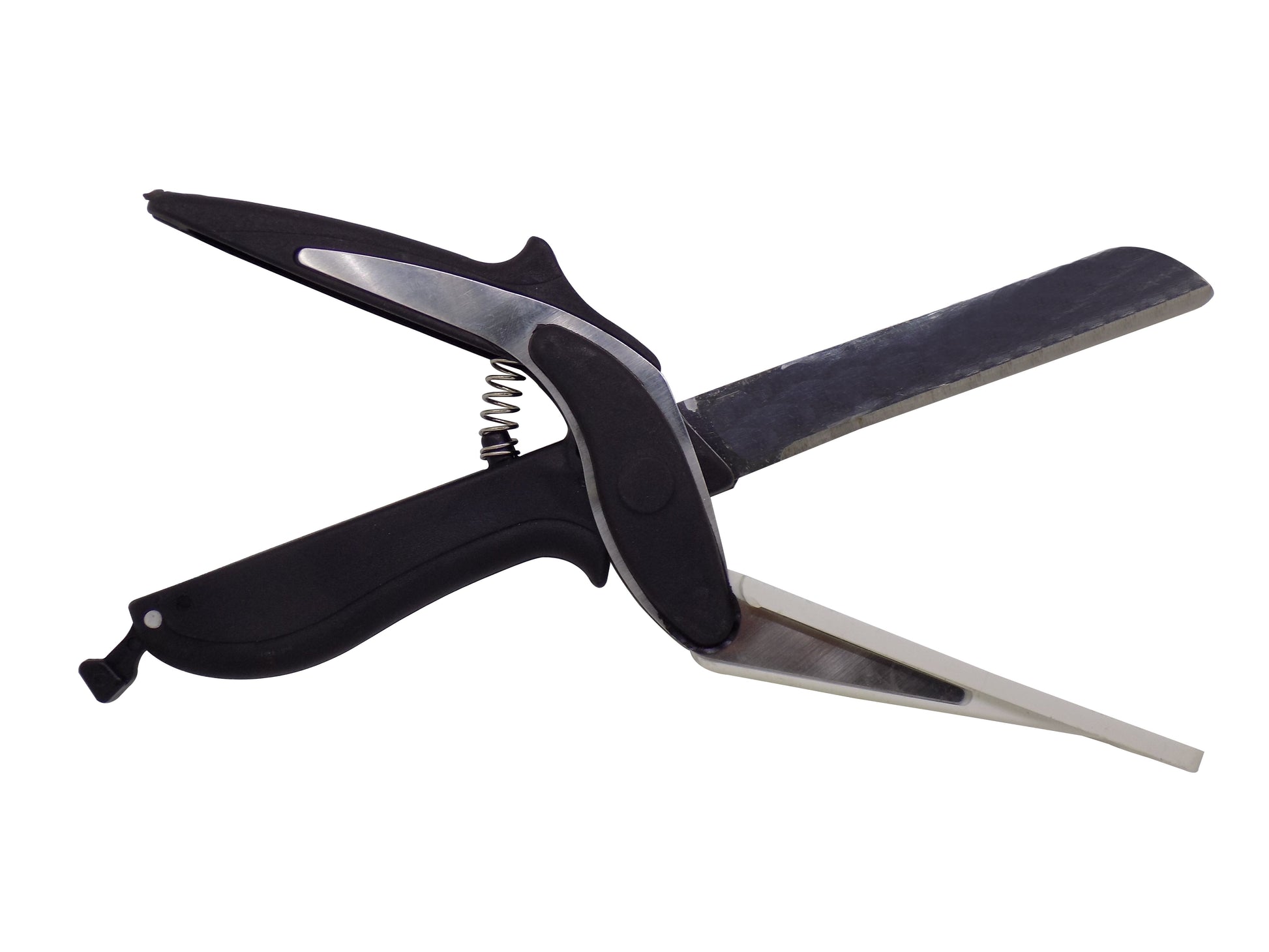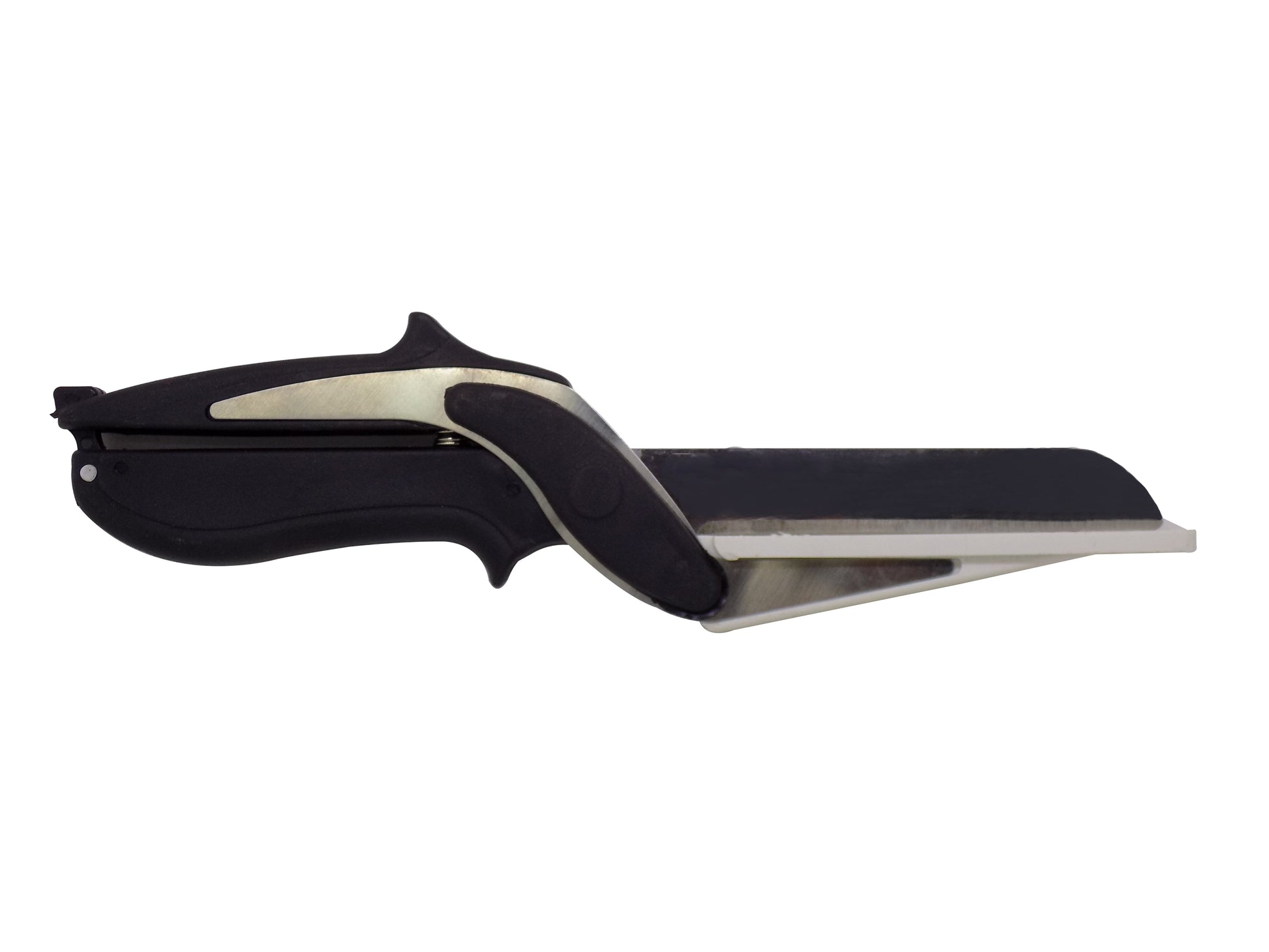Smart Cutter is the revolutionary 2-in-1 knife and cutting board that chops and slices your favorite foods in seconds! The secret of the 2-in-1 design is the ergonomic power pressure handle which helps you to effortlessly cut through food fast! Smart Cutte, premium blade and extra wide mouth makes cutting fruits, veggies, meats and more fast, easy, and mess-free. Detachable, easy for cleanup. The safety latch prevents from accidental cut also make it easy storage. Convenient for picnics and camping trips