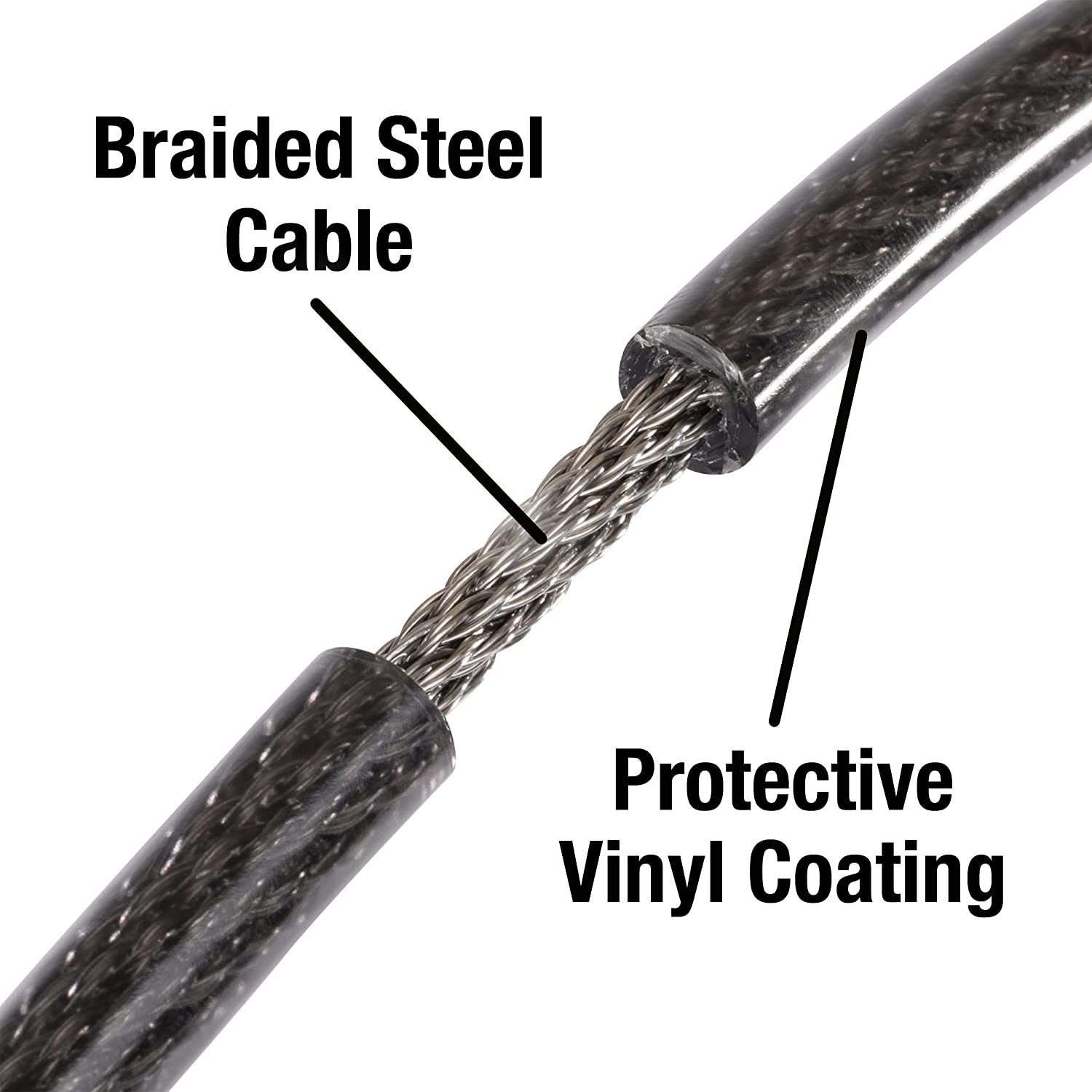 • DURABLE DESIGN: Cable is made from braided steel for strength and flexibility; protective vinyl coating prevents scratching