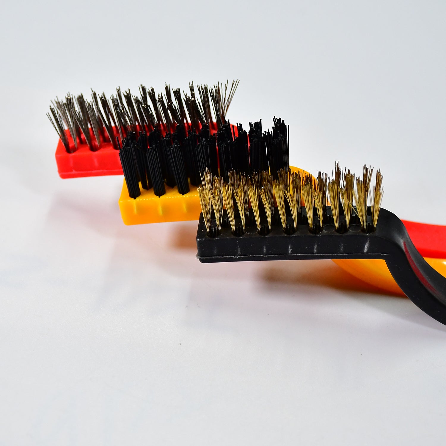 2166 3pc  Mini Wire Brush Set Brass Nylon Stainless Steel Bristles Household Cleaning Brush for Gas Stove, Smoke Machine Tool Burner Tiles Tap Rust Removal Welding Slag Dirt & Paint Scrubbing.