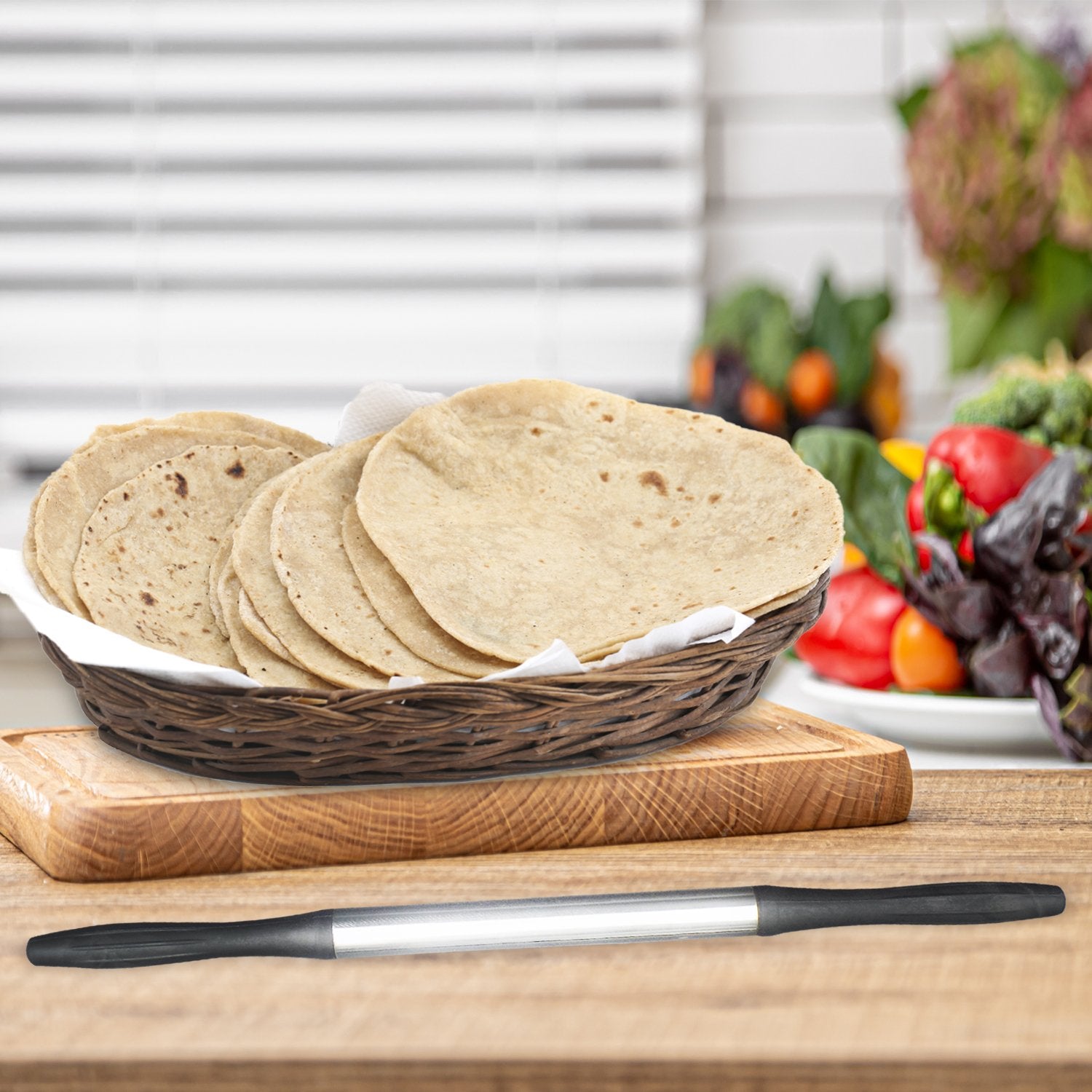 The Plastic Belan/Rolling Pin makes rolling out pie crusts, pastry shells and pizza dough quick and easy. This rolling pin is made from durable, moisture-resistant hard Plastic. The rolling pin features comfortable, easy grip handles for added comfort and control. This rolling pin is an essential tool for any kitchen. This product should be hand-washed with a damp cloth for best results.