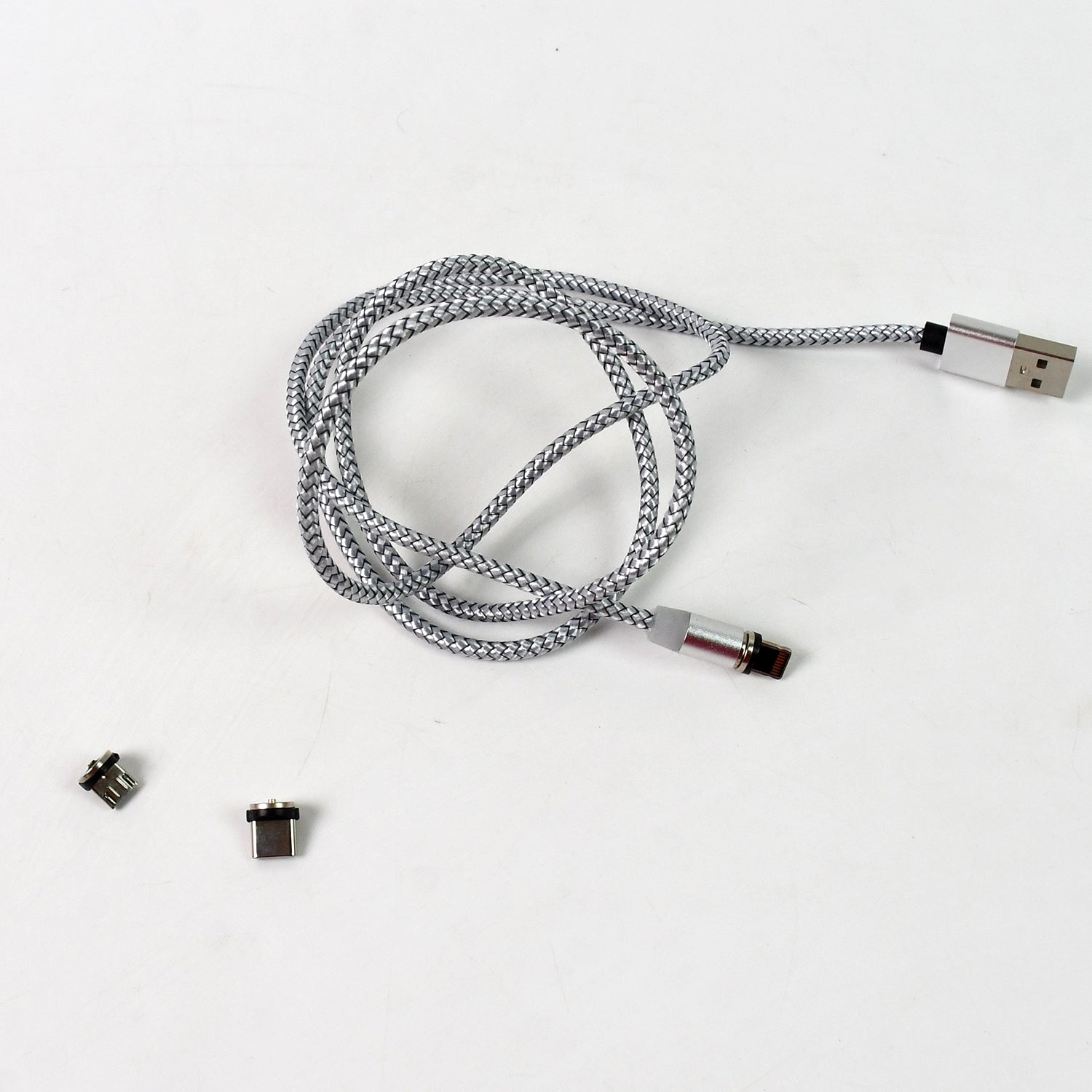 Magnetic Charging Cable, 3 in 1 Nylon Braided Fast Charging Cord Magnetic Charger USB Cable for iPhone / Micro USB / Type C Mobile Phone, Fast Charging Magnet Charger USB Wire Cord Detachable (1 Pc)
