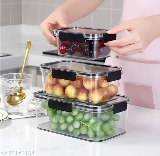 Name : 300ML, 900ML, 1600ML Leak Proof Air Tight Plastic Container Set For Kitchen Storage - Set of 3