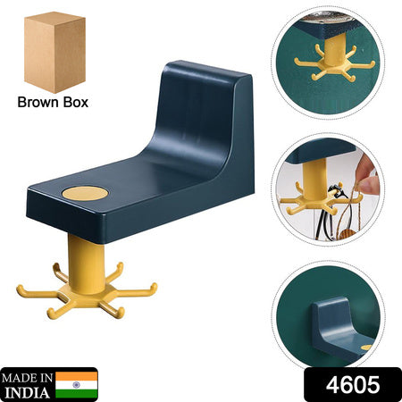 4605 360 Degree Rotating Self Adhesive Plastic Wall Hook Hanger Multifunctional Hanger With 6 Heavy Duty Claw Hooks