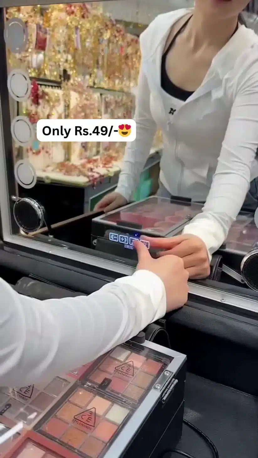This all-in-one vanity case is fully equipped with everything needed for a full face transformation—from base products to finishing touches. It includes premium-quality foundation, lipsticks, highlighters, eyeshadows, and more, organized in a compact and stylish case for ultimate convenience.