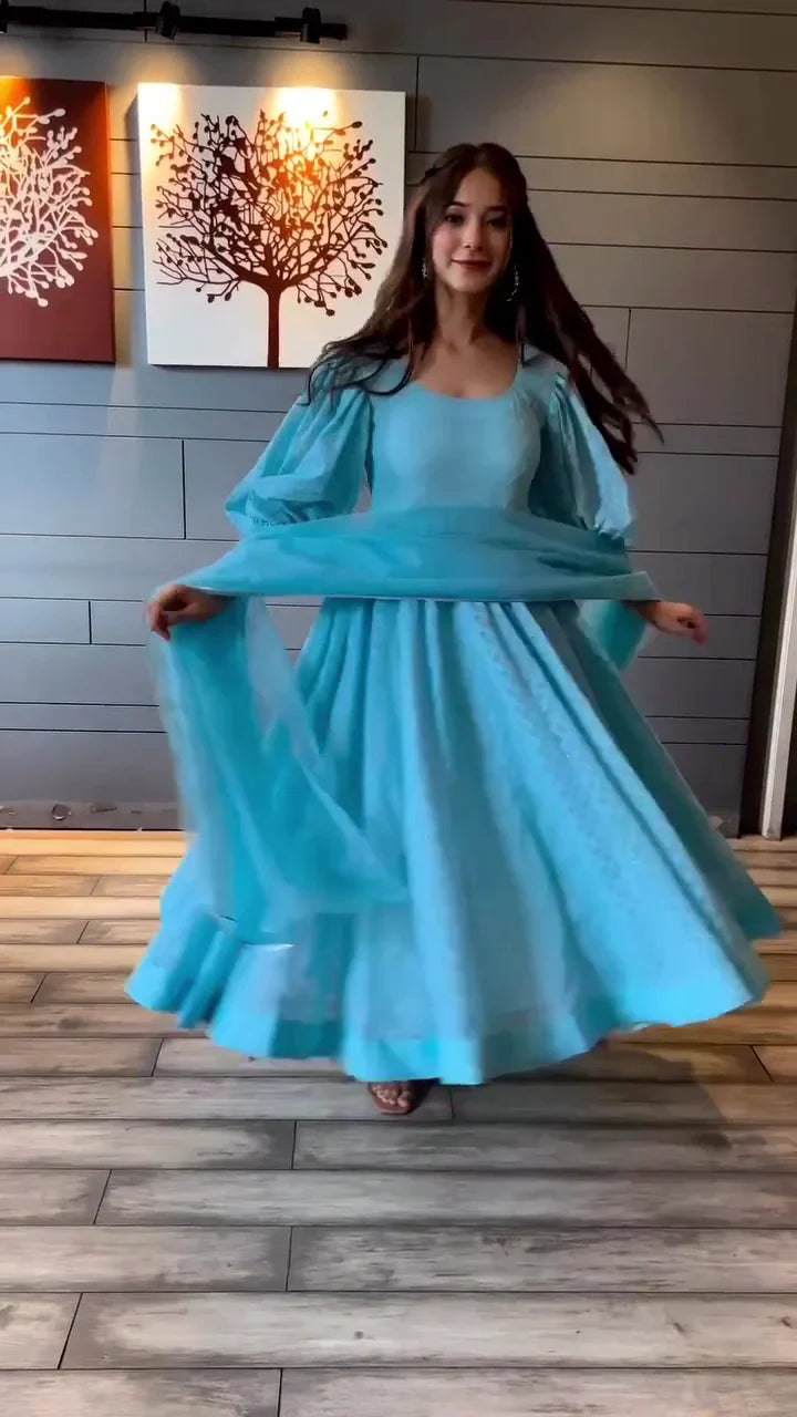 Comfort & Ease: The light fabric and flowing A-line shape ensure the dress is comfortable to wear, perfect for long hours at an event. The puff sleeves and sheer dupatta provide stylish layers without feeling too heavy.