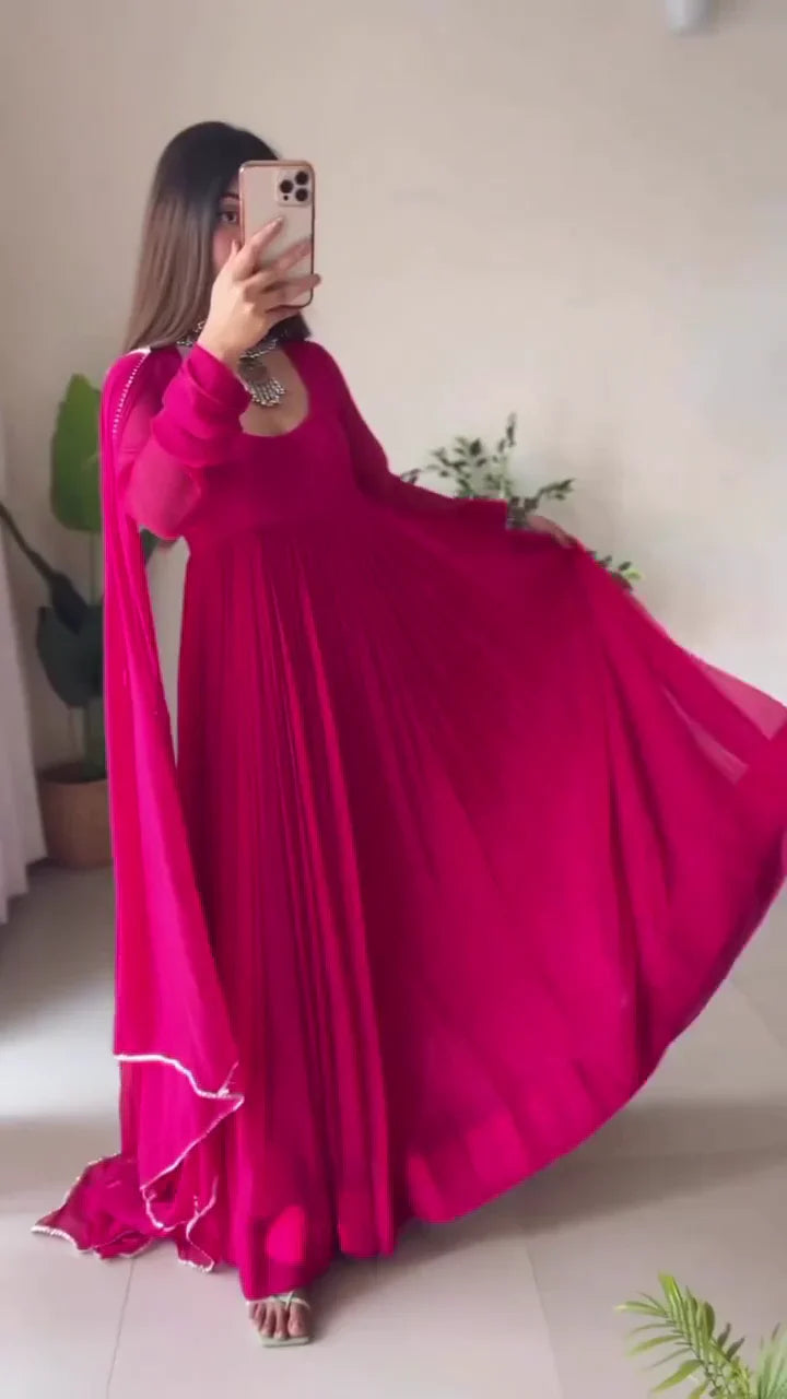 Flattering Anarkali silhouette with intricate pleats that create a voluminous, flowing effect.