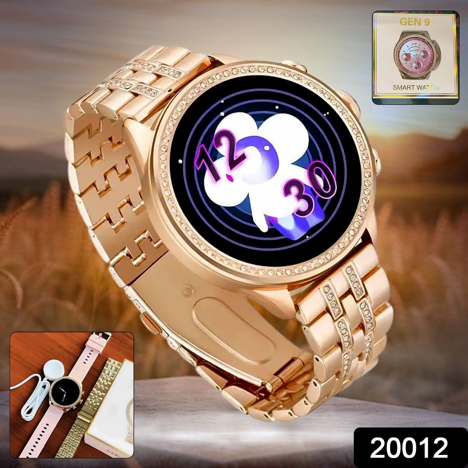 Gen 9 Diamond Strap Latest Edition Smartwatch HD Display 2 Straps Bluetooth Calling Smartwatch for Women's with ON / Off Logo, All Social Messages & App Notifications (1 Set)