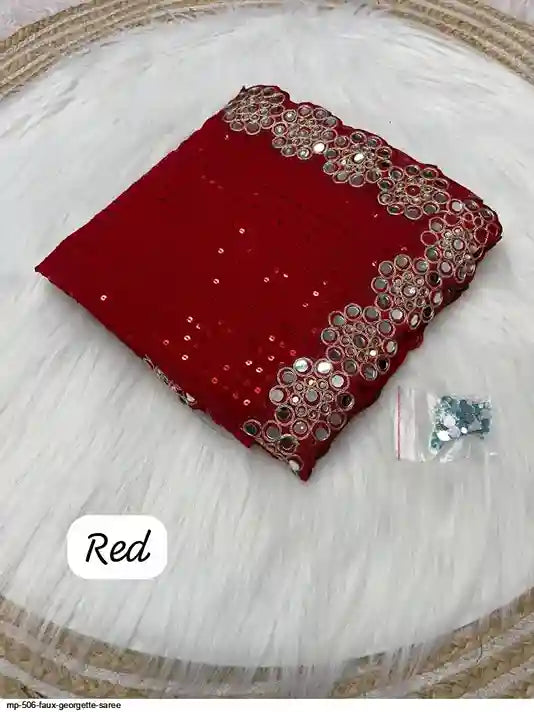 Heavy faux Georgette Blouse With Heavy Embroidery Front & Back With sleeves With Heavy Original Mirror