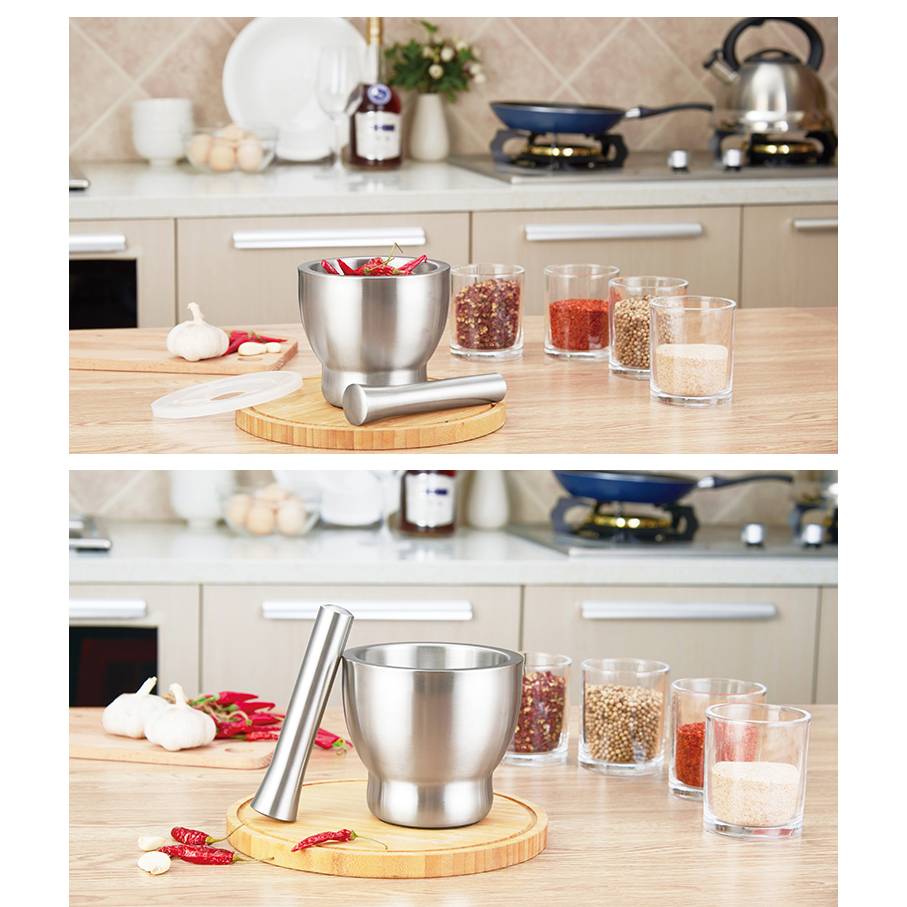 Kitchen Mortar and Pestle Grinder 304 Stainless Steel with Anti Spill Lid