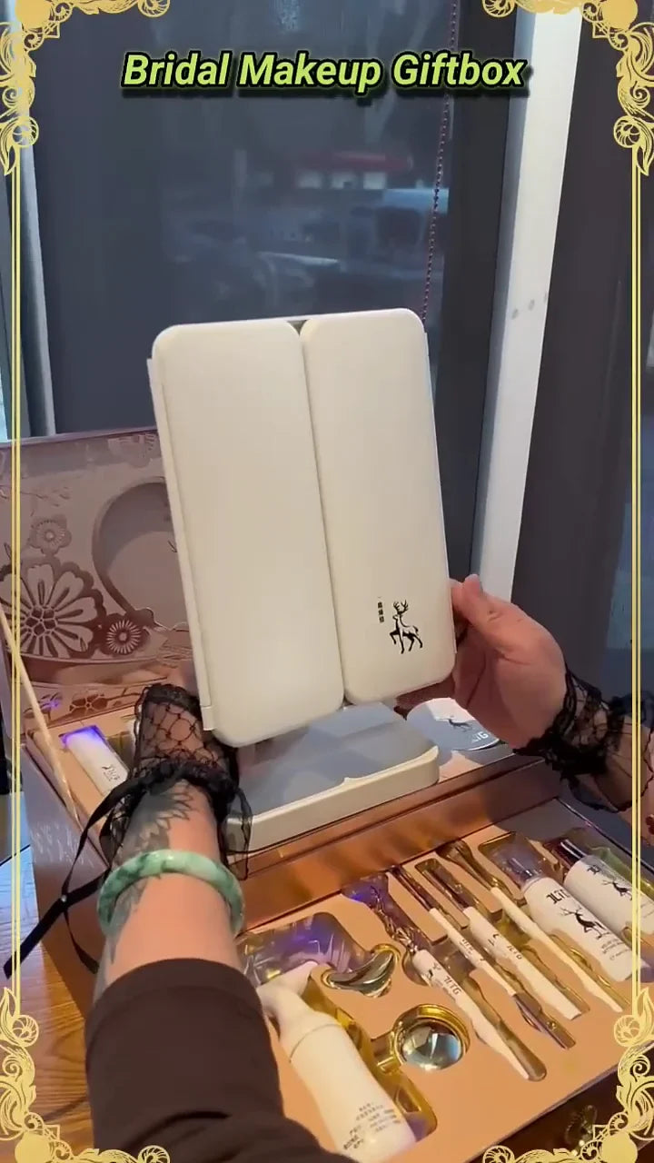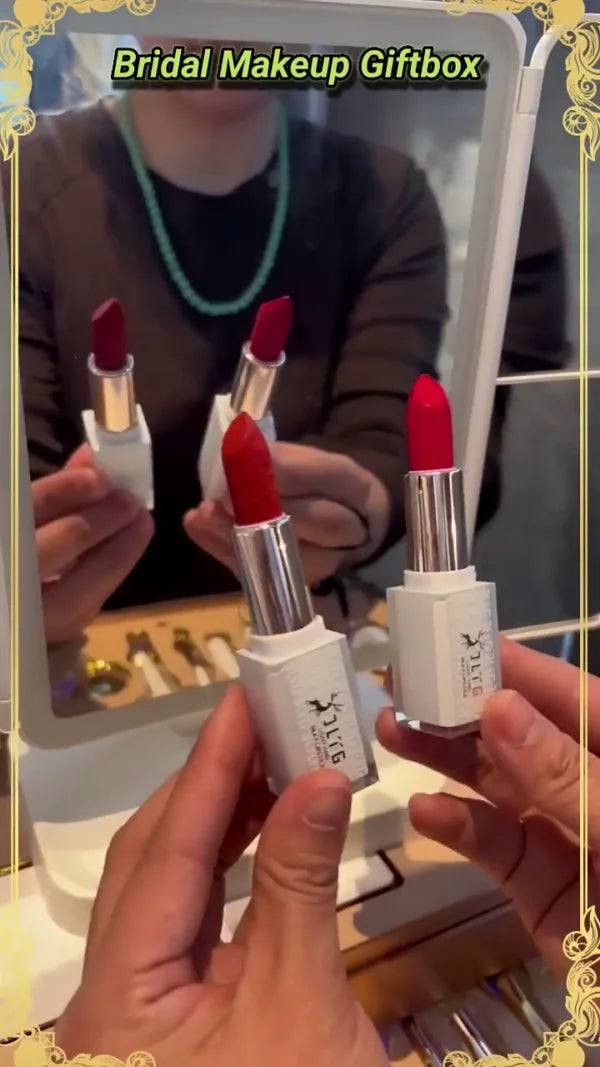Celebrate her big day with this all-inclusive luxury bridal makeup gift box, curated to deliver elegance, beauty, and self-care in one stunning package. Housed in a sophisticated case with a built-in LED mirror, this set is thoughtfully filled with skincare essentials, premium cosmetics, facial tools, and pro-quality brushes—everything a bride needs to glow before, during, and after the ceremony.