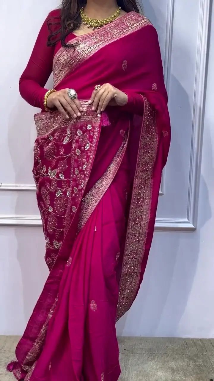 Rich Magenta Hue: Crafted in a deep magenta silk, offering a bold and graceful color perfect for celebratory events.