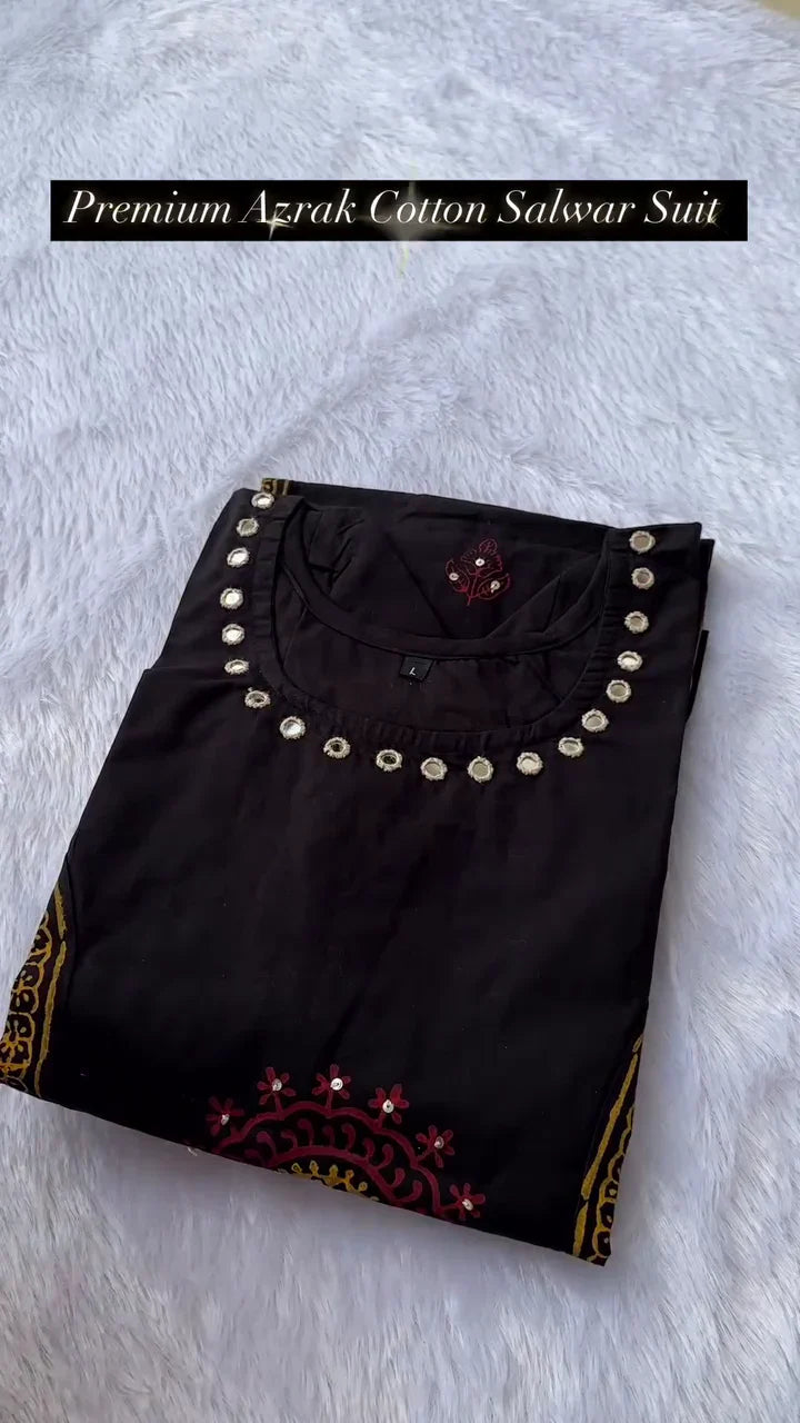 Premium Azrak Cotton Salwar Suit – Elegant Handcrafted Design with Intricate Embroidery, Available in Black and Purple