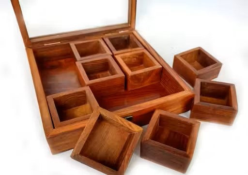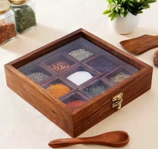 Name : Timbercraft Wooden spice box 9 jars made with shesham wood Spice Box with 1 Spoons – Masala Box/Masala Dabba/Masala Container/Masala Dabba Organizer for Kitchen | Decorative Handmade Wooden Storage Box (Brown).